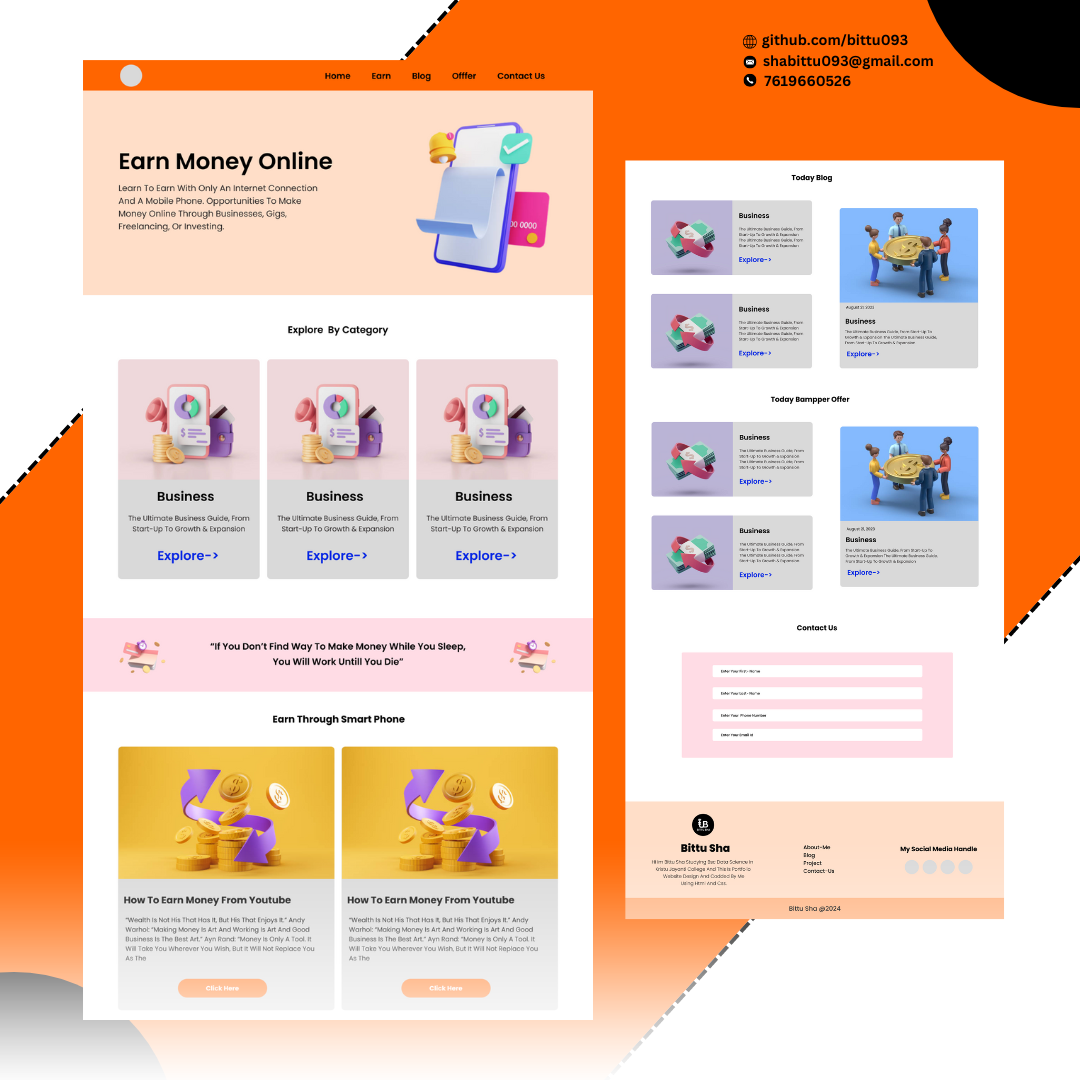 and is currently developing a blogging website and online earning website.